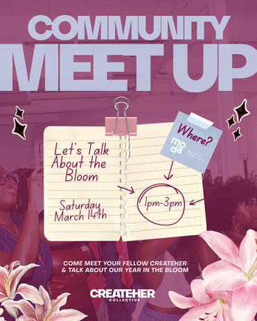We want to hear from you! Join us for our Year In Bloom pre-anniversary Community Meetup. This will be an opportunity to connect with other CreateHERs and share with The CreateHER Team what you would like to see for the future of this collective.